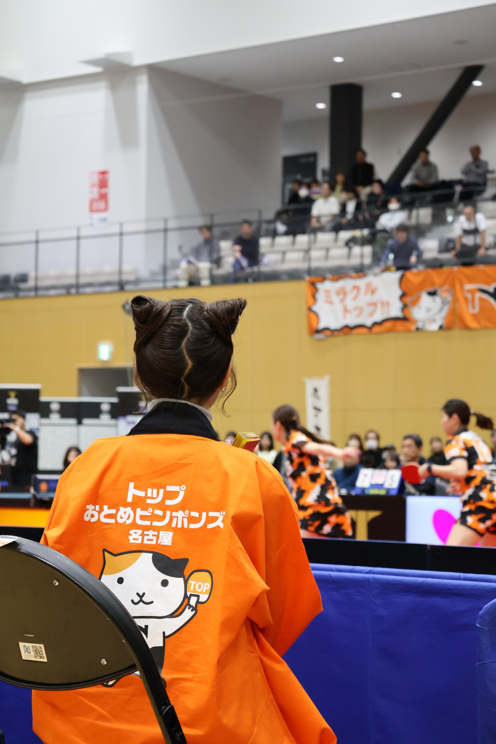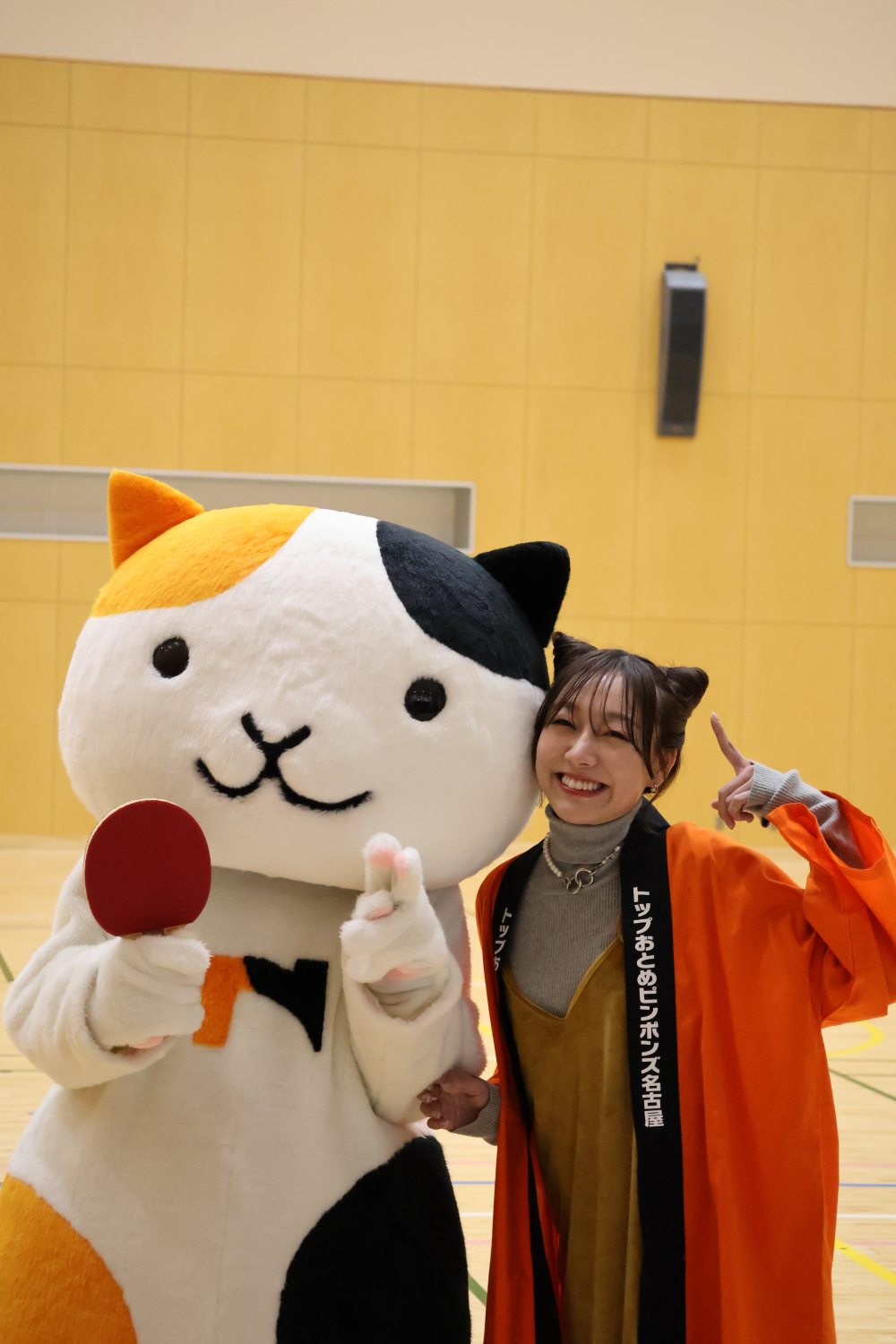 この日の須田さんはトップおとめピンポンズ名古屋のマスコット「タマタマ」🐱