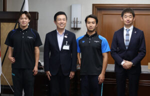 選手名:水町泰杜選手(ウルフドッグス名古屋)、松本恋選手、松本穏選手
