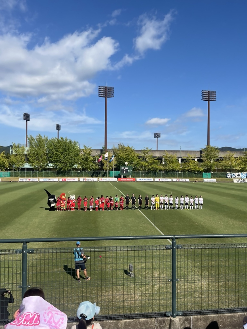 「試合前の練習でコート近くで見学させていただき、シュート練習は迫力がすごかったです⚽」